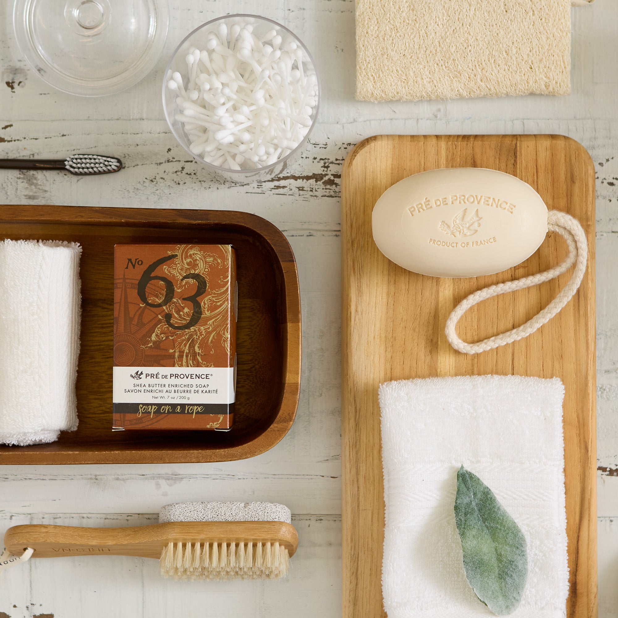 Order today to enjoy our men's No. 63 Pre de Provence soap on a rope, this luxurious shea butter enhanced soap creates a rich, creamy lather to moisturize and soften your skin, great for sensitive skin