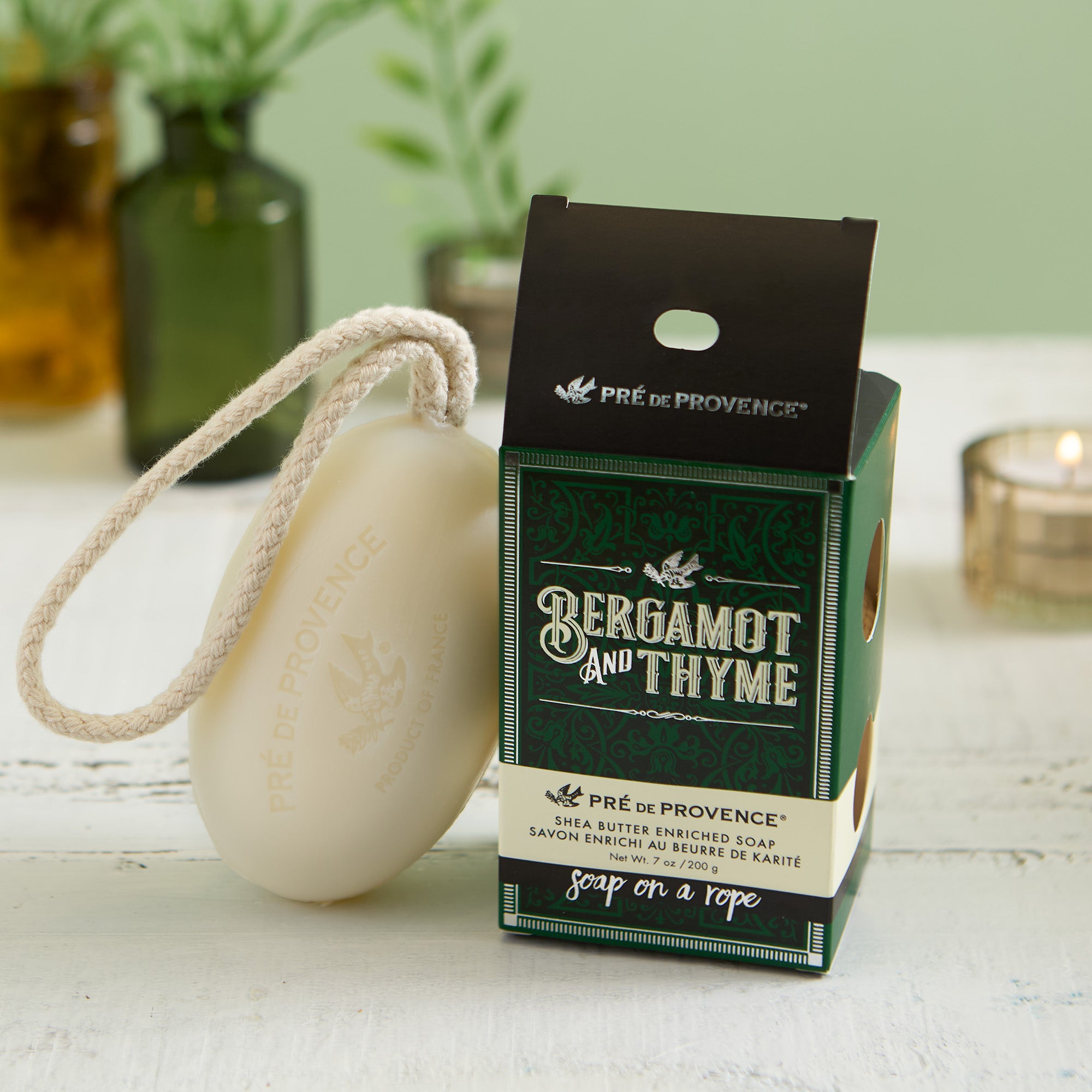 Order today to enjoy our Pre de Provence soap on a rope, this luxurious shea butter enhanced soap creates a rich, creamy lather to moisturize and soften your skin, great for sensitive skin.